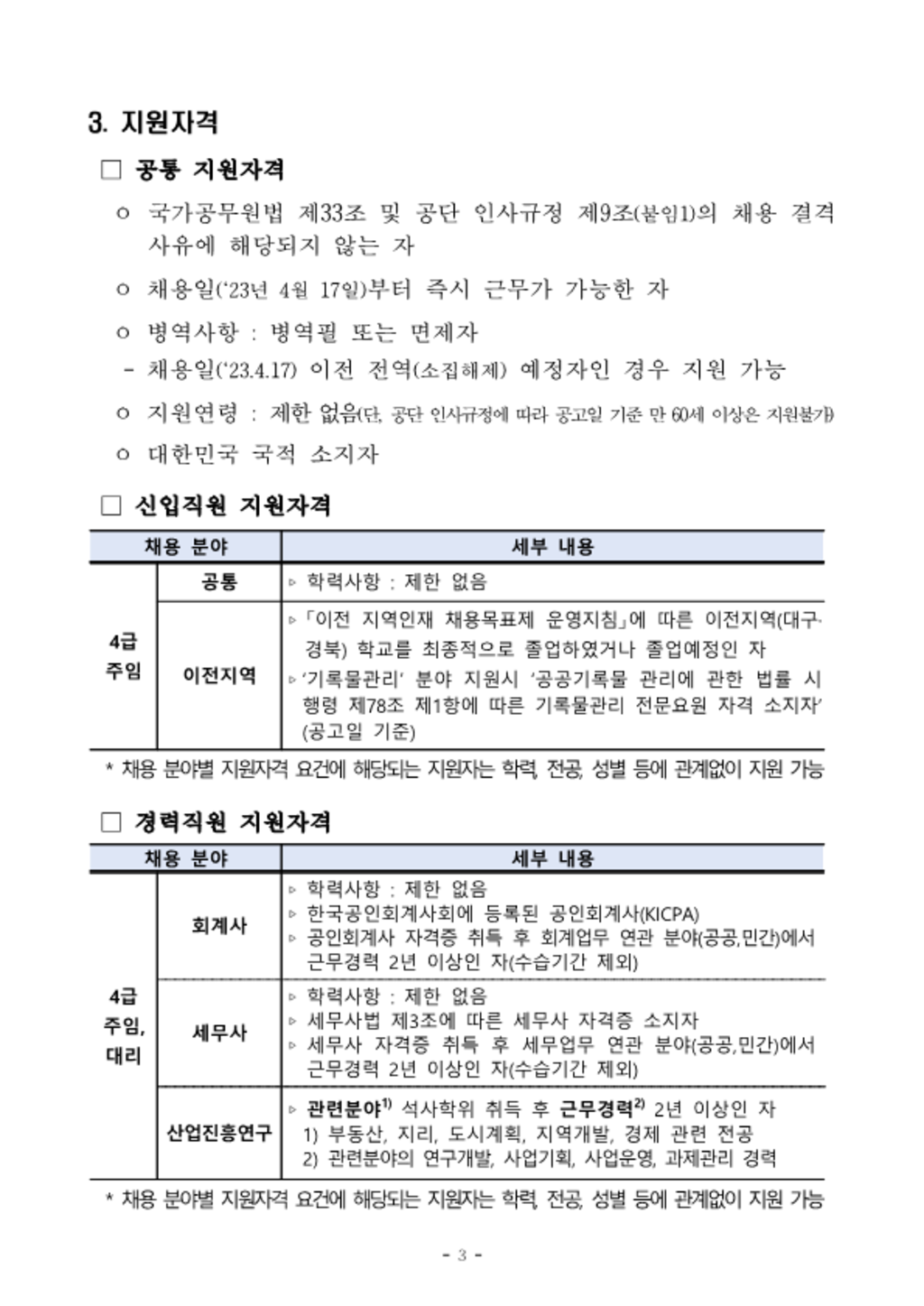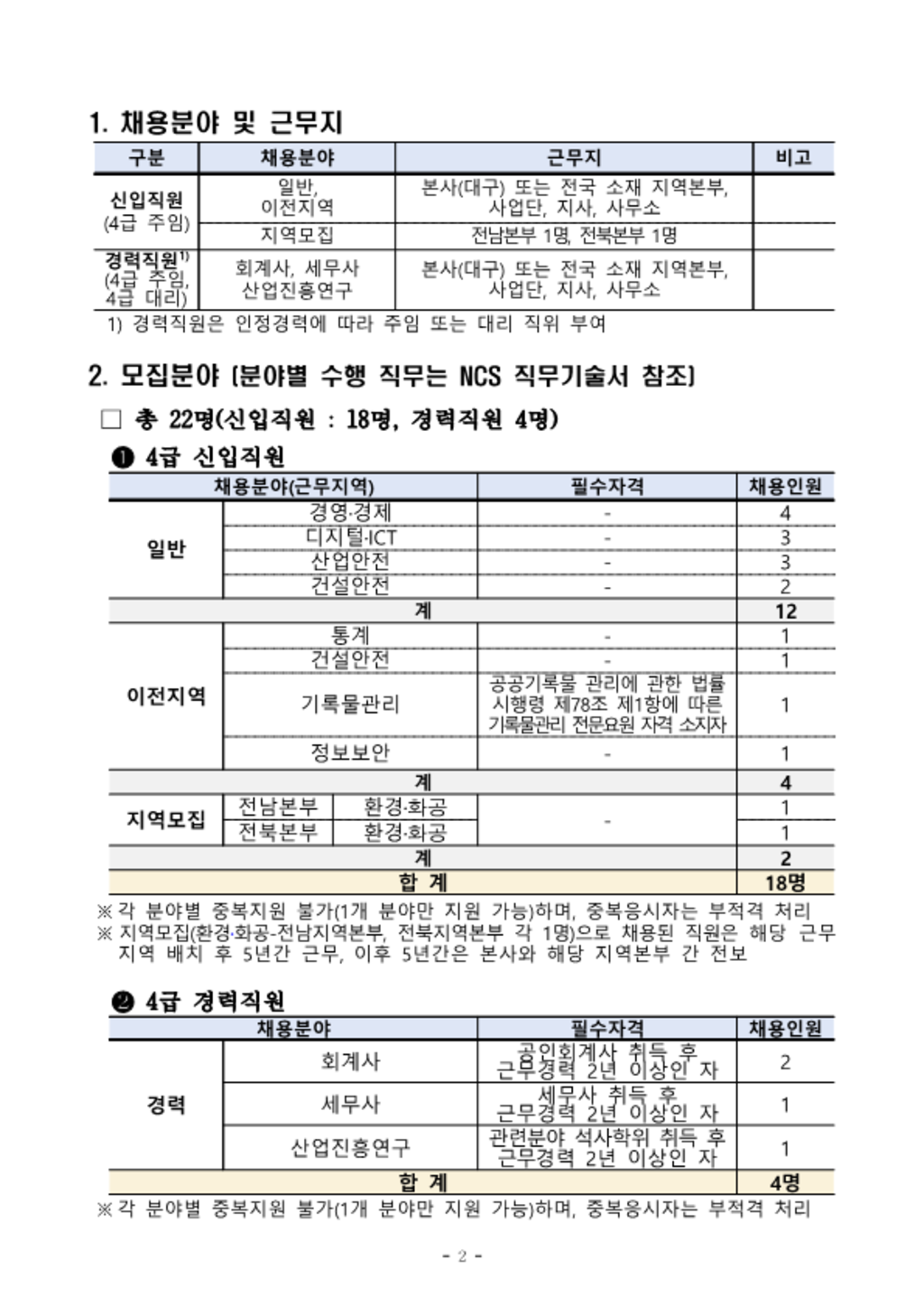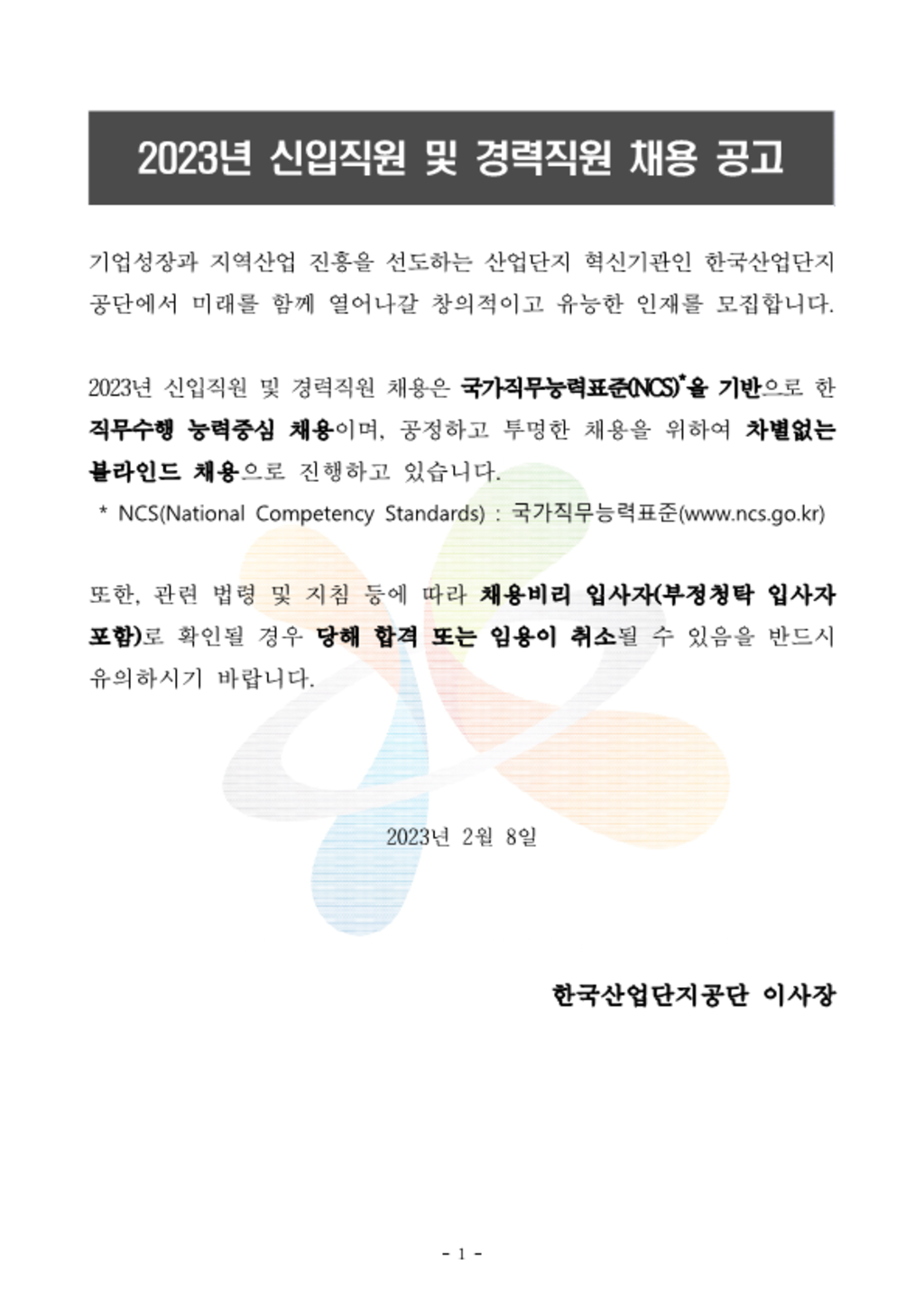본 채용계획서 원본파일은 아래에 첨부하여 업로드 하였으니 관심 있으신 분들은 다운로드 받아 보시기 바랍니다.첨부파일 2023_한국산업단지공단_대상자_채용기관_업무_제안서_최종.pdf 파일 다운로드